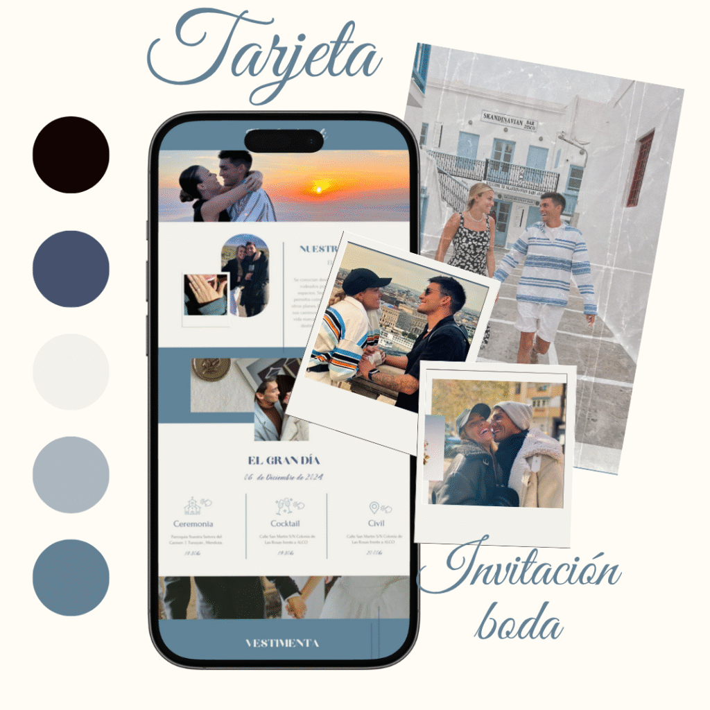 Cada sección se integra con fluidez y estilo, creando una invitación cálida y memorable.